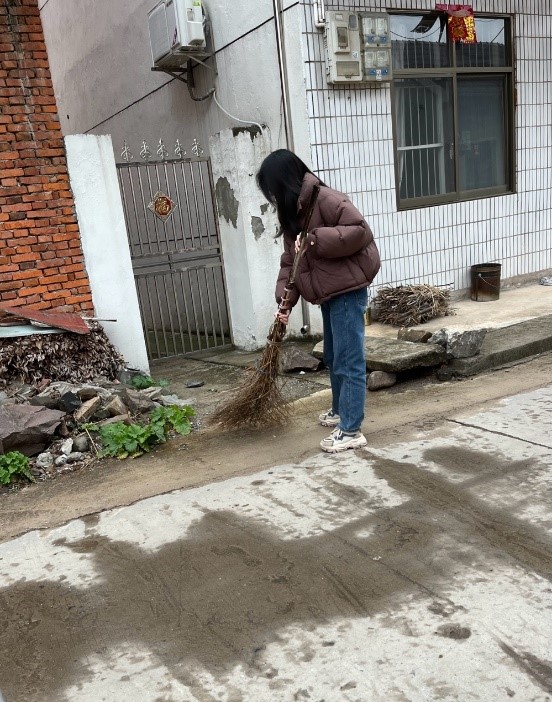 2024年1月食品质量与安全1 班周舒悦同学于江苏扬州和志愿者在社区街道办事处一起参加社区服务卫生。将办公室,路面,楼梯口等地方进行卫生打扫处理,将路边倒地的自行车摆放整齐。这次活动她了解到志愿者服务活动培养的不仅仅是一种精神,更是培养了极限和耐力,同时激发人的潜力,觉得终于为社会做了一点力所能及的事情,在志愿活动中找到了自己的价值。也同样加强了劳动观念,培养了开拓进取的精神。