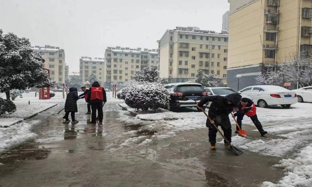 扫雪除冰,温暖人心迎新春。二月份寒流来袭,安徽飘落大雪。社区号召志愿者开展清理积雪志愿服务行动,消除安全隐患,保障辖区居民出行安全畅通。食品质量与安全1班刘声艳同学积极参加社区组织的扫雪活动,志愿者们冒着寒风、踏着积雪,手持铁锹、雪铲等工具,对社区路面以及周围人行道路上的积雪进行清扫。大家齐心协力,原本布满积雪的路面被清扫干净,保障车辆通行安全和群众出行安全。用“小行动”保障“大民生”,为社区清扫出了一条“平安路”、“温暖路”,不少路过的居民,对志愿者们忙碌的身影投来赞许的目光,纷纷为这支扫雪大军“点赞”。